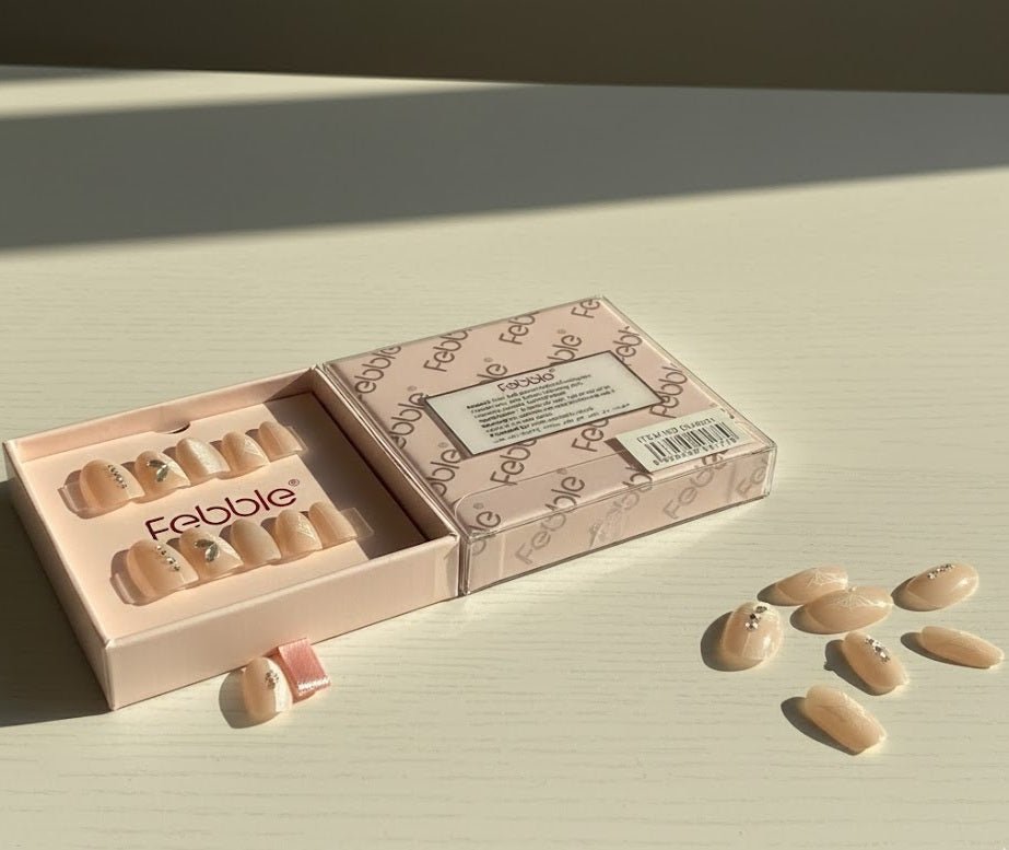 Febble Nude Shine Leaf Press-On Nails – 10 Pcs Premium Set