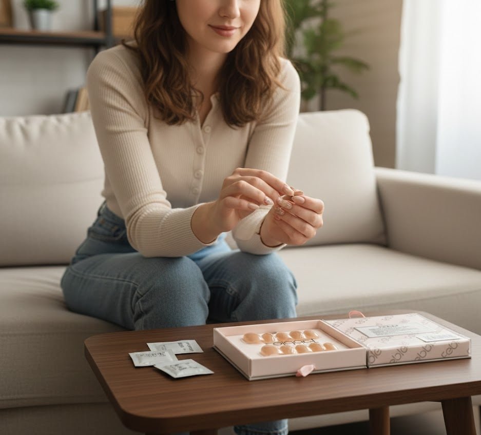 Experience a high-end, salon-quality manicure at home with the Febble® Nude Gold Swirl Luxury Press-On Nails. This elegant 10-piece set features a rich nude base with delicate gold and white swirl accents, giving your nails a modern, sophisticated, and classy look. Perfect for parties, events, office wear, or everyday elegance.