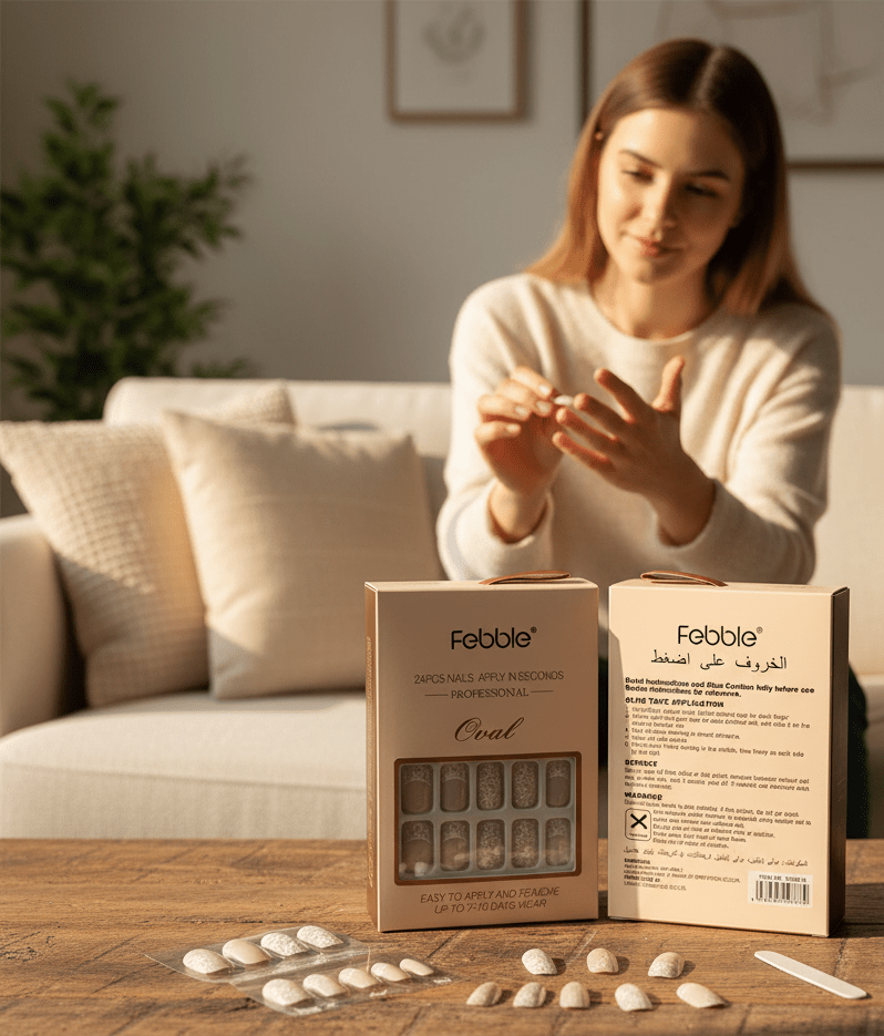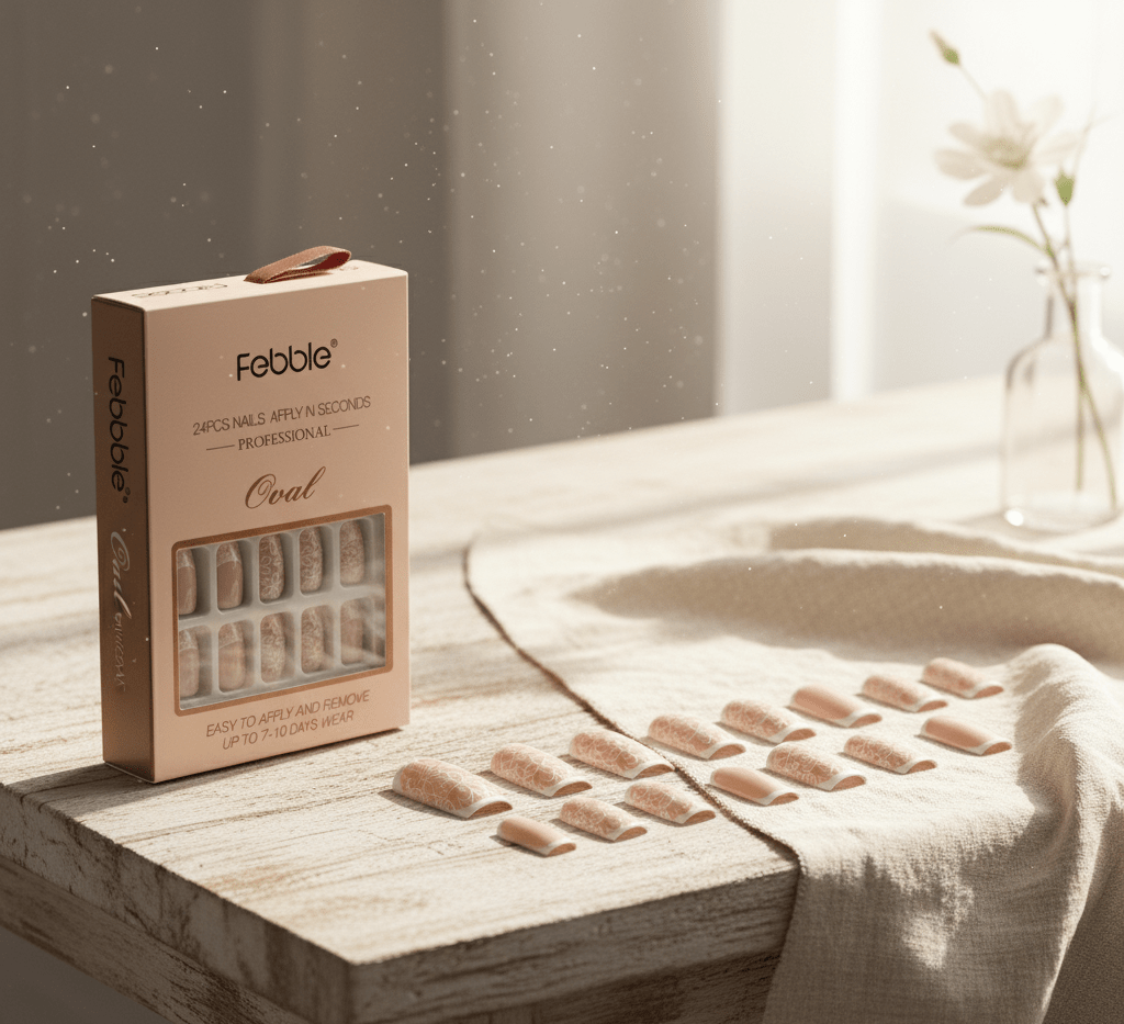 Add a soft and elegant touch to your manicure with the Febble® Beige Floral Oval Press-On Nails. This beautiful set features a warm beige base combined with delicate white floral designs, giving a chic, feminine, and naturally stylish look. Apply in seconds and enjoy salon-like results for up to 7–10 days.