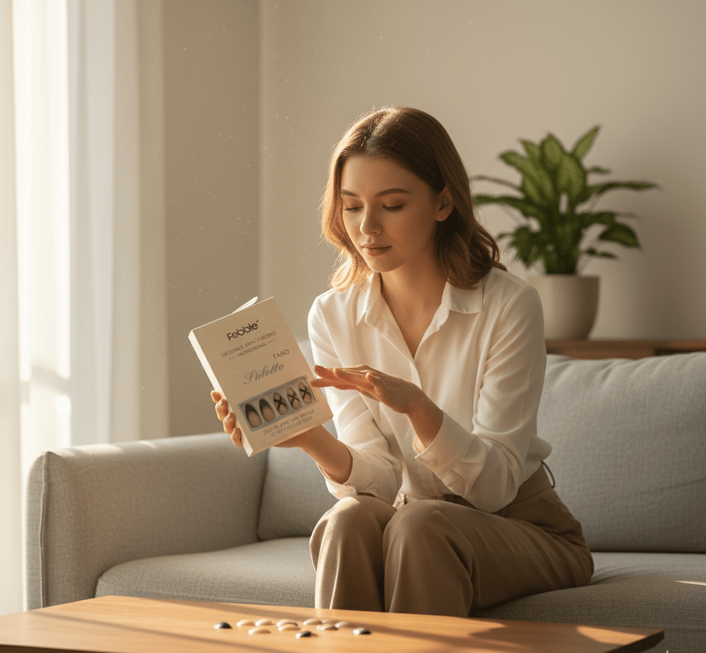 Achieve a bold, high-fashion manicure in seconds with the Febble® Black Graphic Nude Stiletto Press-On Nails. This striking set features a soft nude base combined with edgy black line art and criss-cross graphic designs—perfect for a modern, chic, runway-inspired look. Applies quickly and lasts up to 7–10 days.